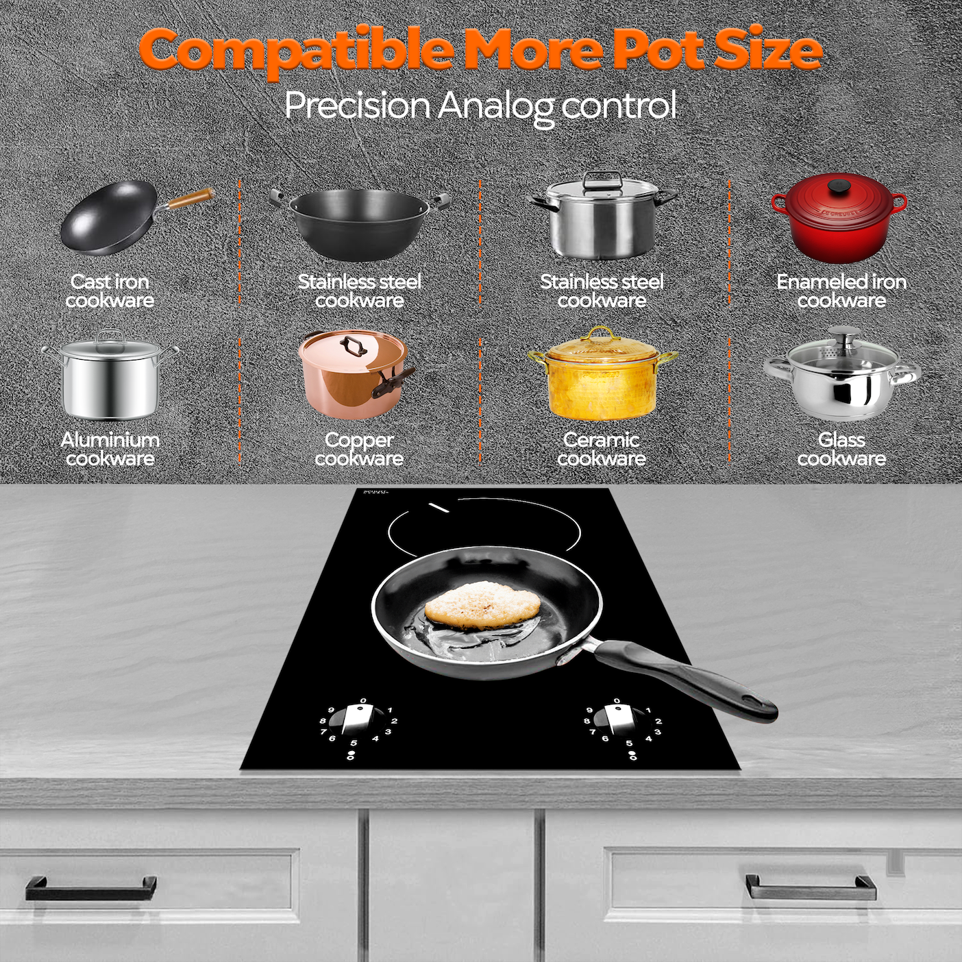 110V, Ramblewood 2 Burner Electric Cooktop, EC2-27, UL Certified German EGO Burner